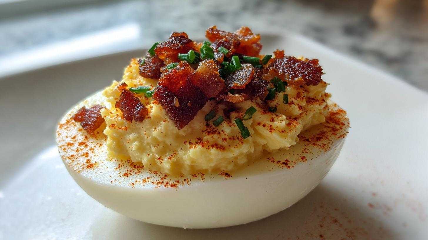 What makes these deviled eggs so special? It’s the perfect harmony of flavors. The crispy bacon adds a smoky, savory crunch. The creamy yolk filling is rich and balanced. It’s a delightful twist on a classic, making each bite unforgettable. They really stand out!